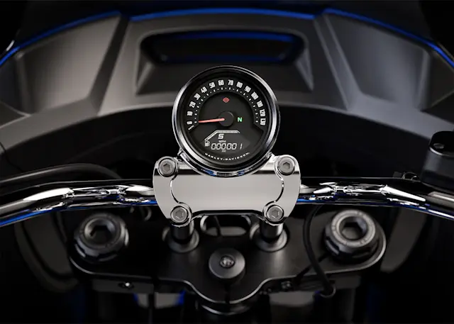 An analog speedometer with a built-in multi-function digital display provides key ride data, including a gear shift indicator and new selectable Ride Modes (Road, Rain, and Sport), so you can fine-tune your ride like never before.
