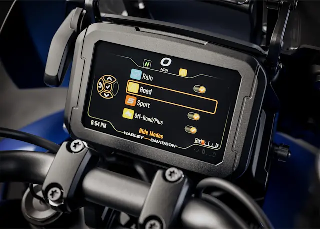 Key information is displayed on an easy-to-use touchscreen allowing for quick adjustments to Ride Mode, Bluetooth™ audio, Safety Enhancements, and more.