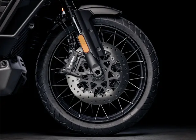 Brembo brakes, front and rear, provide excellent feeling and incredible stopping power, paired with Cornering Rider Safety Enhancements that are tunable for on- and off-road riding.