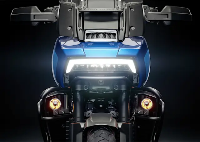 The Adaptive Daymaker™ headlight casts a broad, pure white light, ensuring your ride continues well after dark. With lean angle-controlled bank lighting, its 12 LED spotlights adjust to the bike's lean, providing curb-to-curb visibility and enhancing your view through corners.